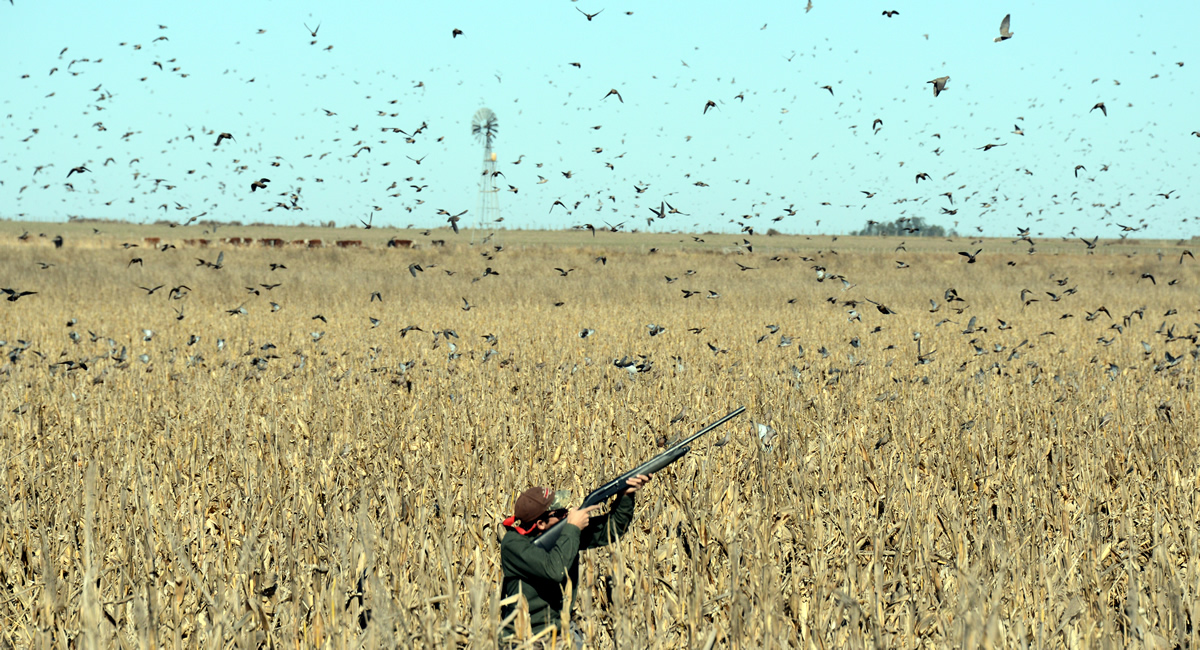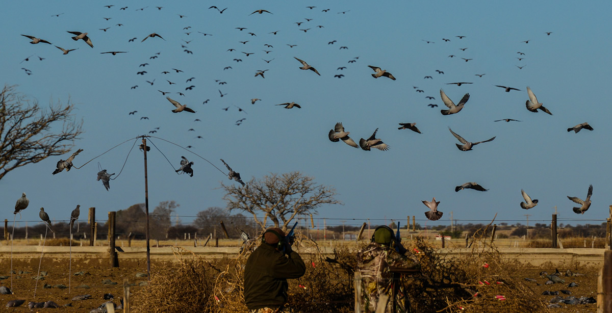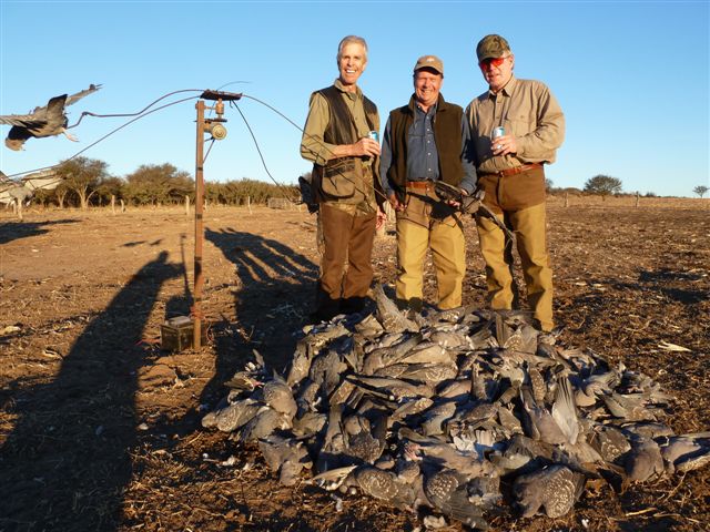 Pigeon shooting takes place in harvest corn fields or sorghum plantations which provides for incredible decoying. Fields and plantations are constantly scouted by experienced guides. Your personal guide will construct your blind from natural brush, place a nice spread of decoys within gunning range and then position themselves a short distance away so to assist you with gun loading, shells or just serve you a hot cup of coffee or a cold beer. Hunters can expect to shoot 6 boxes in a half-day shoot.